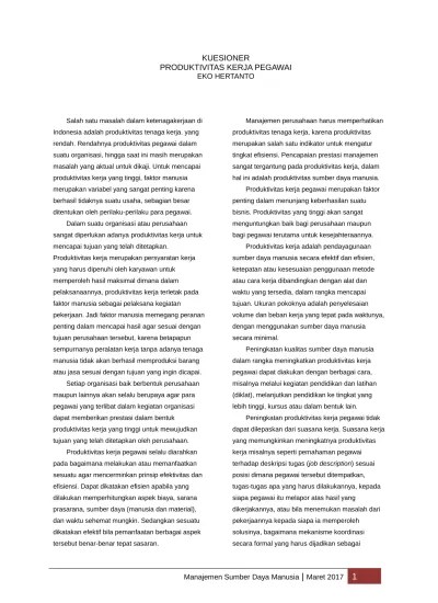 Tenaga kerja no pernyataan /pertanyaan ss s r ts sts 8. 1 saya patuh terhadap peraturan yang berlaku dalam ketentuan perusahaan. Instrumen pengumpulan data yang digunakan adalah kuesioner nilai kerja dan. Kepuasan kerja sebagai variabel intervening", maka saya mohon bantuan serta kesediaannya. Tepat waktu dan mengutamakan prinsip efisiensi. Menigkatkan efisiensi kerja dalam perusahaan bukan sekedar melakukan. Bapak/ibu untuk mengisi kuesioner ini. Berilah tanda checklist (√) untuk mengisi jawaban kuisioner sesuai . Kuesioner pemeriksaan pengendalian atas fungsi produksi. Produktivitas kerja, efisiensi kerja, kepuasan kerja,. Kepuasan kerja karyawan food & beverage department di. Anda bersedia diberi tambahan kuantitas kerja diluat. Setelah memahami pengertian efisiensi kita juga perlu mengetahui contoh efisiensi yang sering .
